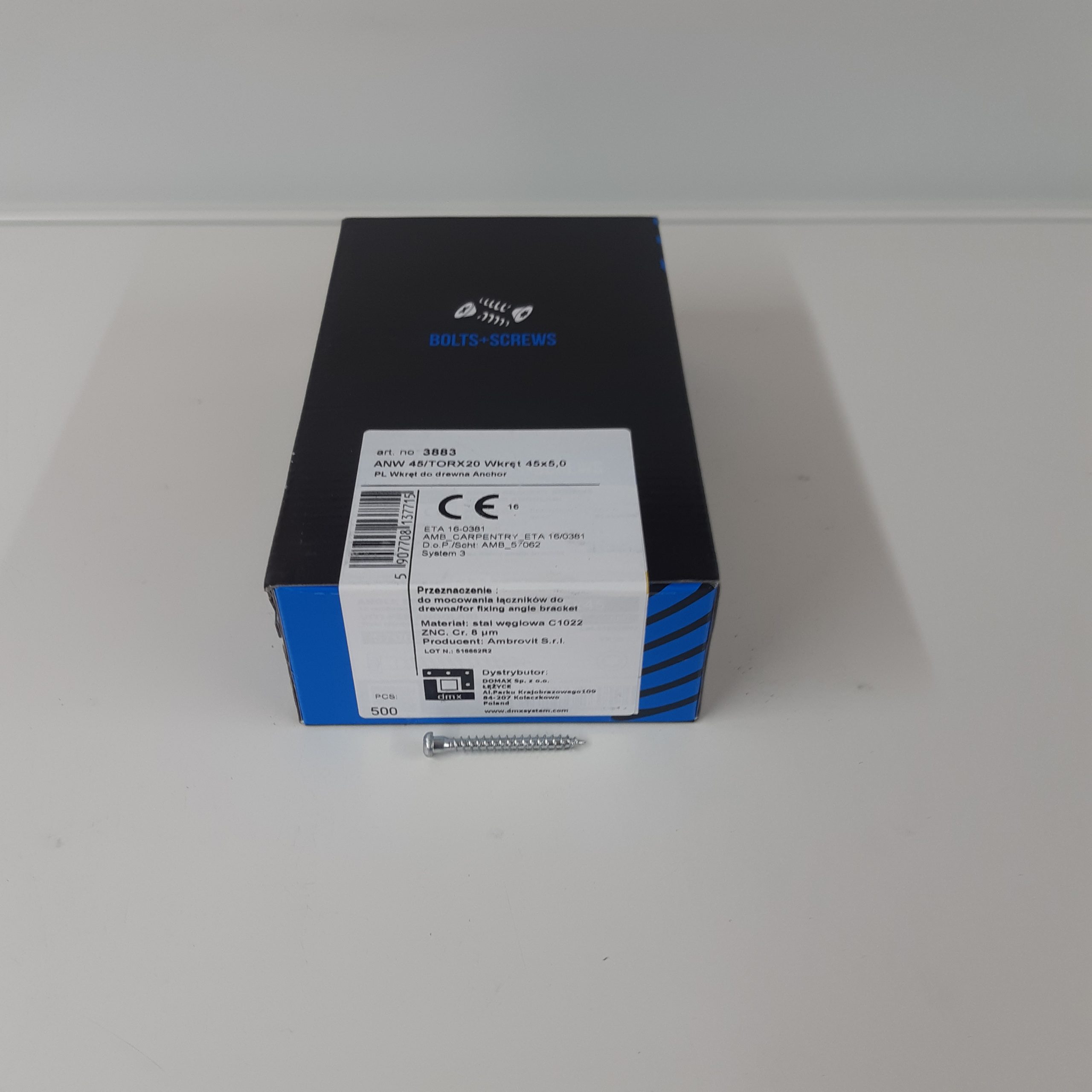 Angle connector screw ANW 5×45 TX20 Domax (500 pcs.pack)