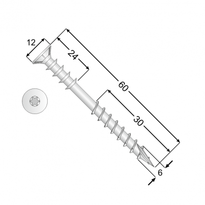 Distance wood screw WDS 6×60 TX30 (200 pcs/pack)