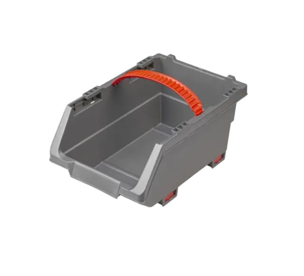Plastic tray with handle for PGP 5 warehouse. They are used for storing and transporting small parts in the workshop.