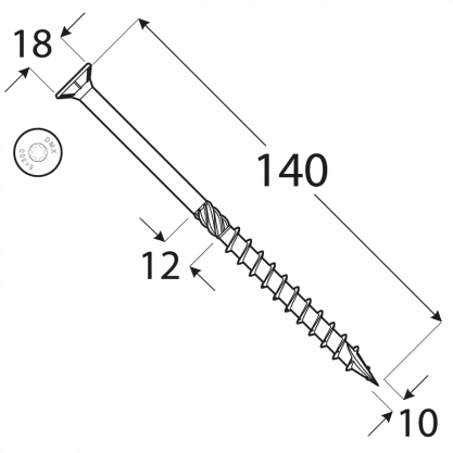 Wood screw CS 10×140 TX40 (50 pcs.pack)