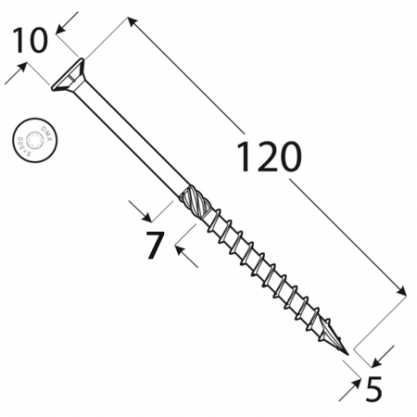 Wood screw CS 5×120 TX25 (100 pcs.pack)