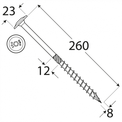 Wood Screw CT 8×260 TX40 / 50 pcs