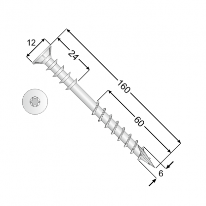 6×160 TX30 / 100 tk/pakk