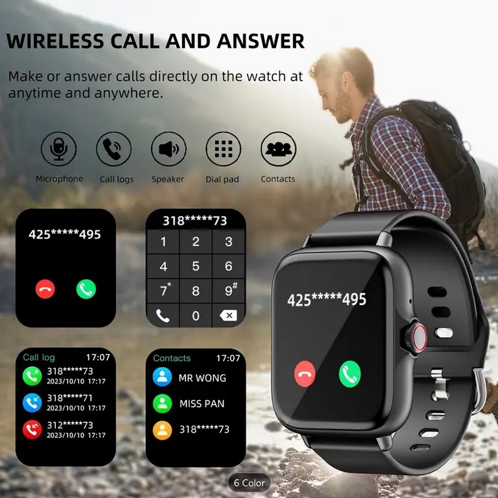 Nutikas käekell, 4,65 cm puuteekraan, aktiivsuse jälgija kõne- ja sõnumifunktsiooniga, sammulugeja, mitu spordirežiimi, veekindel, ühildub IOS-i/Android-seadmetega, lihtne stiil, ideaalne kingitus igaks juhuks. Palun laadige seade pärast selle kättesaamist enne kasutamist. 1-2 tundi Värv: must